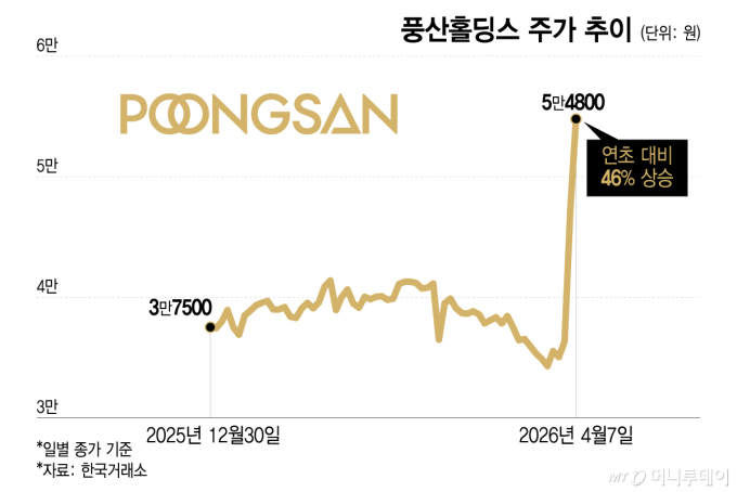 À̳¯ Çѱ¹°Å·¡¼Ò(KRX)¿¡¼ dz»êȦµù½º´Â Àü °Å·¡ÀÏ ´ëºñ 7550¿ø(15.98%) ¿À¸¥ 5¸¸4800¿ø¿¡ °Å·¡¸¦ ¸¶ÃÆ´Ù. ÁÖ°¡´Â À̳¯ ÀåÁß ÇѶ§ 6¸¸900¿ø±îÁö ¿Ã¶ó »ó½ÂÆøÀ» 1¸¸3650¿ø(28.89%)±îÁö ³ÐÇû´Ù.